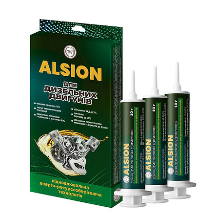 Високоефективна присадка для дизельних двигунів на основі технології «ALSION». Технологія ALSION належить до запатентованої нанотехнології, а саме до відновлювальної енерго ресурсозберігаючої технології що використовується для обробки вузлів тертя механізмів і агрегатів працюючих у масляному середовищі для захисту від зносу, відновлення вузлів тертя механізмів і агрегатів, подовження терміну служби механізмів і агрегатів, зменшення споживання енергоресурсів (паливо, електрична енергія, теплова енергія), підвищення ККД, подовження строку служби мастильних матеріалів, зниження шкідливих викидів в навколишнє середовище, зменшення температурного навантаження (зменшення перегріву).